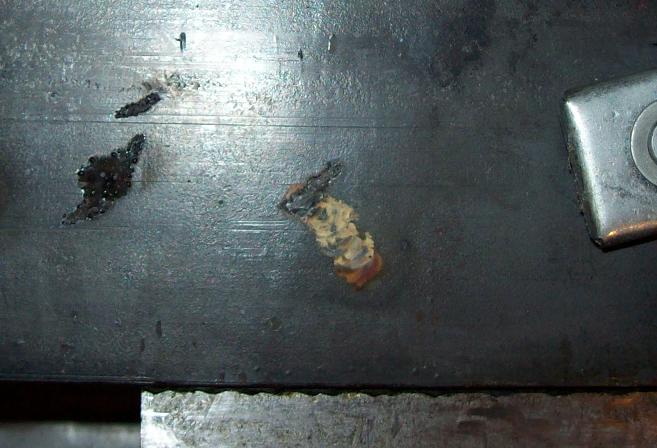 I;ve got a big sheet of the stuff, its about 1mm thick (maybe a bit less), so I cut a strip and folded it into a box section, clamped it lightly in my vice and tried it on a much lower setting (off the dial - remmeber the readout is still 001) probably about 30 amps - the stainless just laughed at it, I think I would have done better with a soldering iron!! So i cracnked it up to about 120ish amps thinking I'll blow holes in it, and at least prove the thing works - NOPE, exactly the same result.