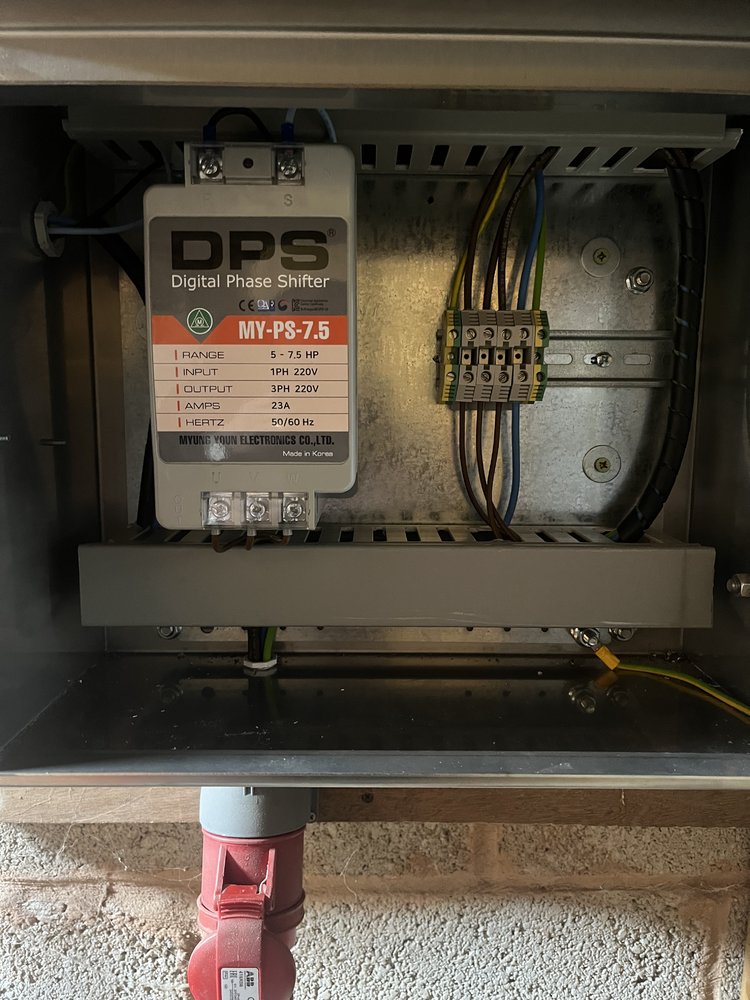 It is running on single phase with a digital phase diverter fitted rated for5 to 7.5 hp motor and 23a .