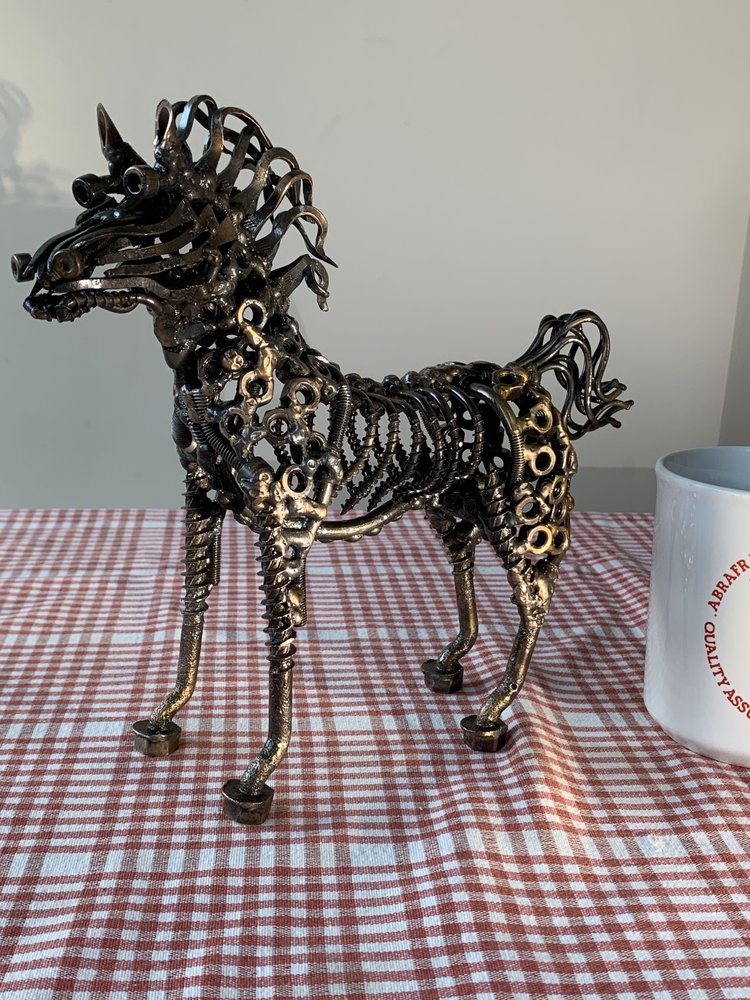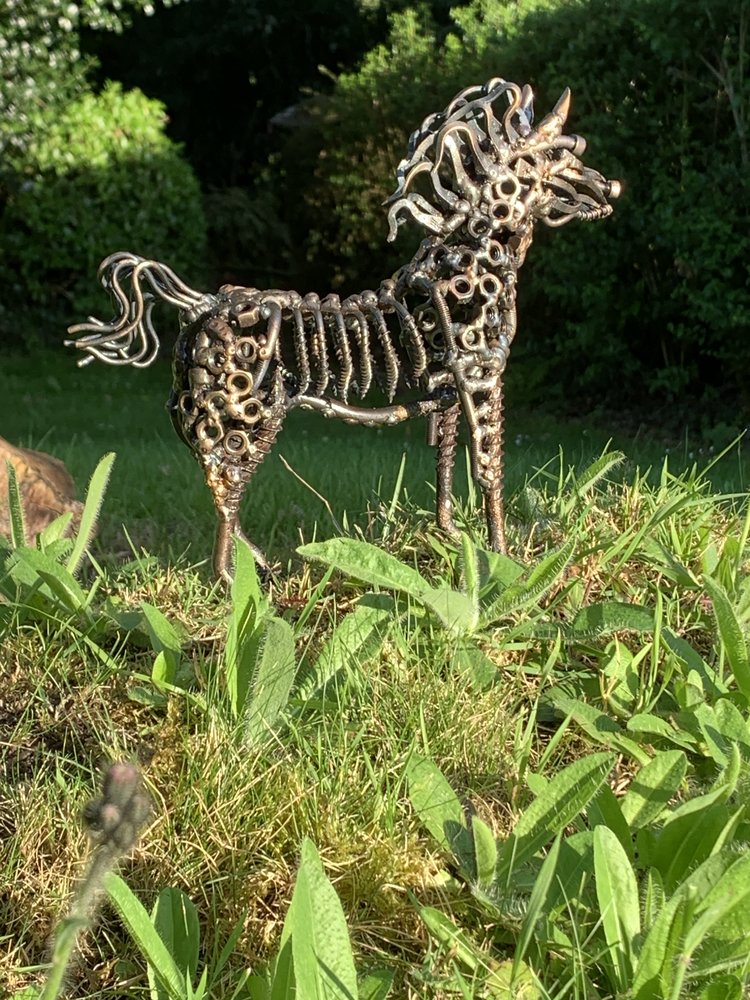 A previous customer who likes what I make asked to make another sculpture for his wife. The design brief was “a horse” (I like a loose specification, lots of scope for randomness). I think they like it as they’ve ordered “a dragon”. For next year. So here it is with the requisite mug shot. :-