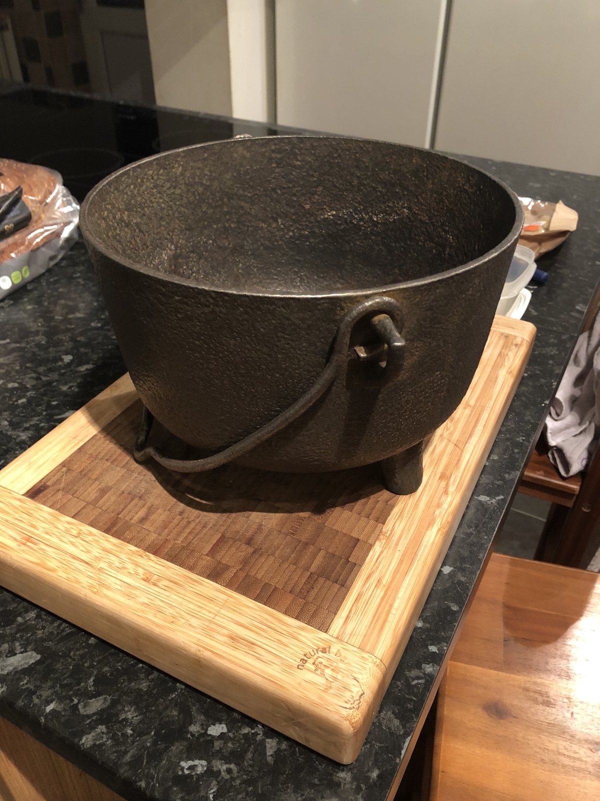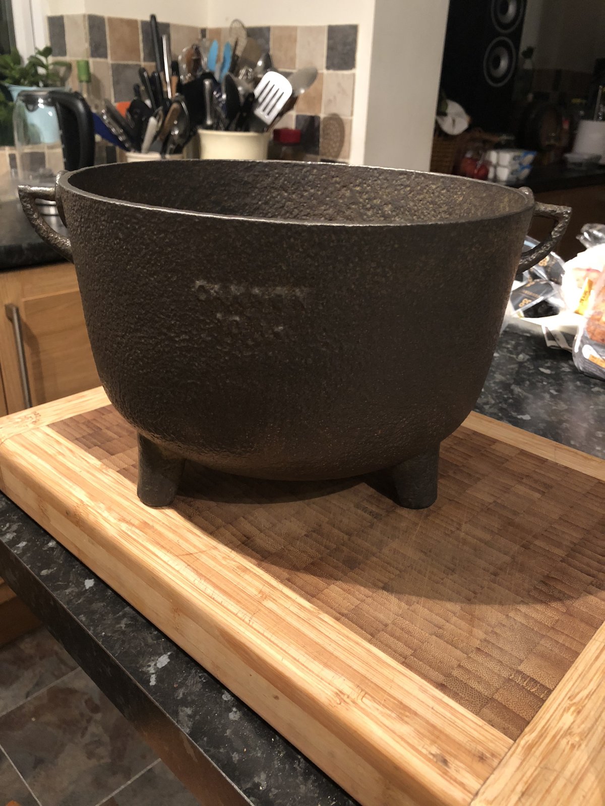 Cauldron came up nice, ParmAwesome, I’ll have a proper measure up tommorow and knock up a better sketch. It’s rough cast and not very accurate so I’ll have to be guided by you and the other knowledge folk here on tolerance and clearances. Centre hole will be fine