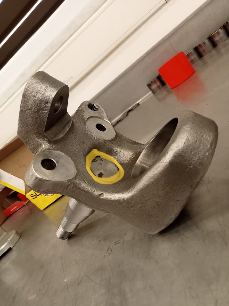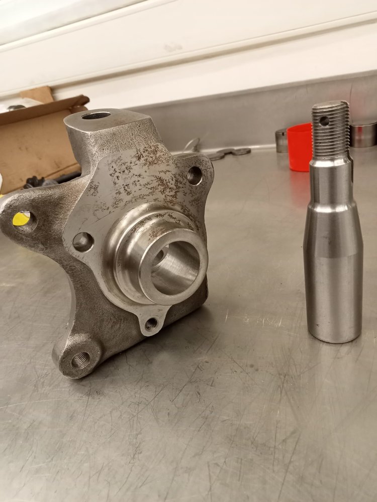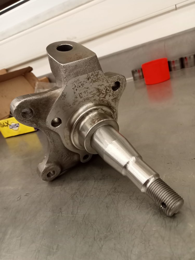 As some of you might recognize the part, it is an Escort front stub axle and this is a typical modification in order to have a stronger axle pin in the rallying field.