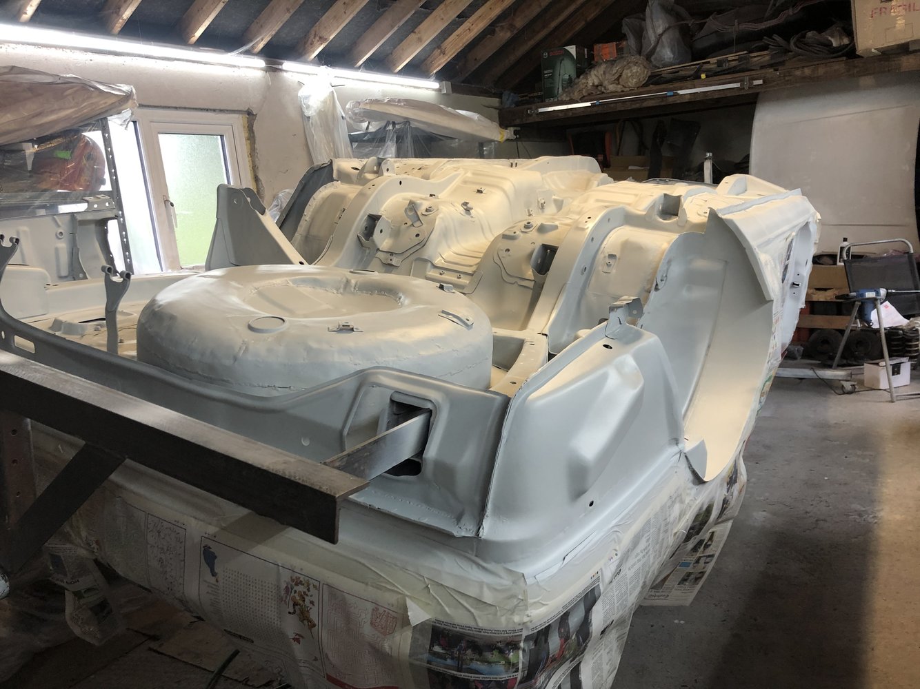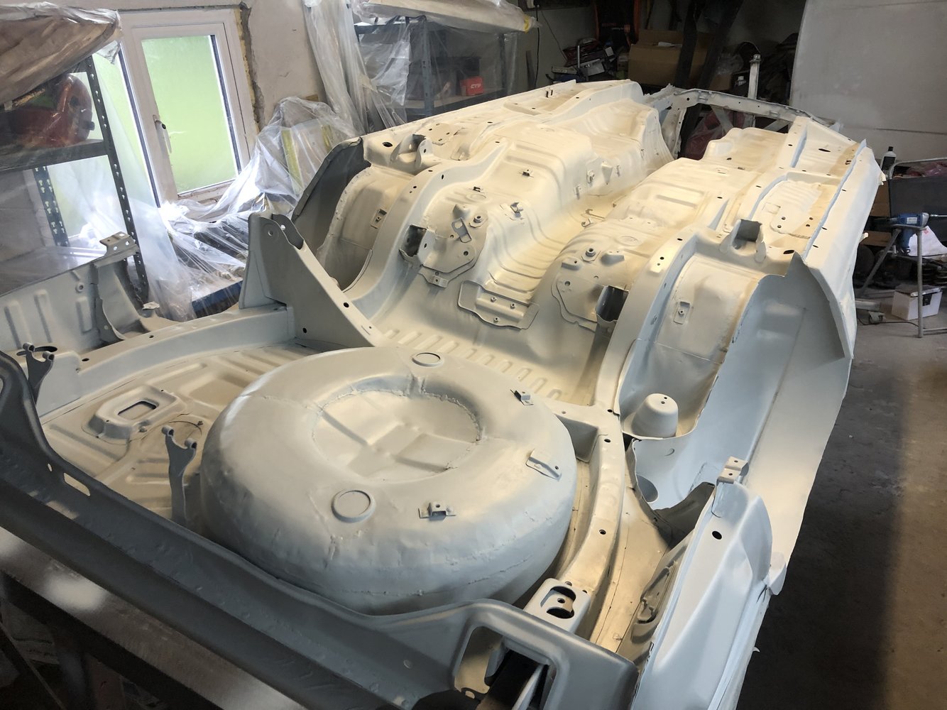 I've been using a 1 part (aerosol) epoxy rust converter on the bare steel prior to putting on the epoxy final paint coat (this is something I just made up myself!)....then I scotch pad the epoxy converter lightly and I put the final epoxy over that. So far I'm happy with the results (first car I did this way was back in 2015 and still looks good underneath).As regards the epoxy primer, I’m not 100% sure