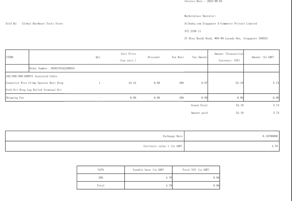 Ah ok so its not all in pounds...I dont think I have had one like that before..Not sure what you aren’t sure on but the top box, everything but the right hand Collum is in the sellers currency, then it’s transferred to pounds right hand collum. The next box shows you the exchange rate and the final box is the totals.