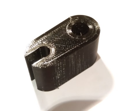 It is to be a small bracket ... a closed off hole that will slip over an 8 mm stick of fibre glass rod at one end and at the other a sort of c opening into which I will press a 6.4 mm butyl water line that holds the misting spray heads for my garden & greenhouse irrigation system . I need 60 plus at the end of the day then another 40 or so in a different size.
