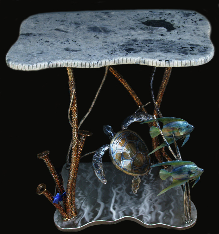 It's a fairly thick colored paint that still lets you see the metal underneath.