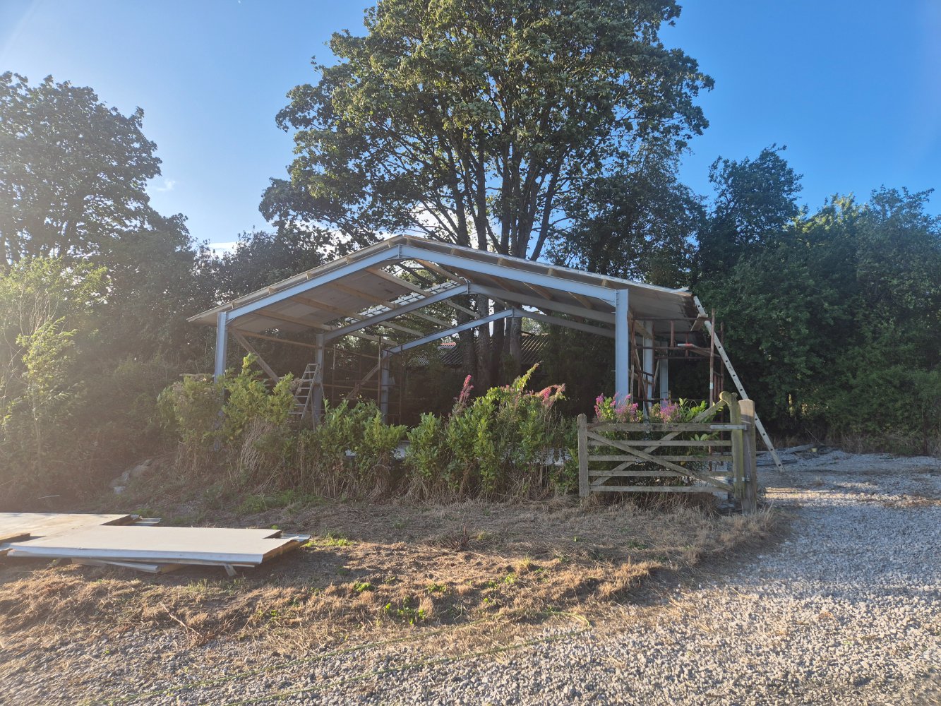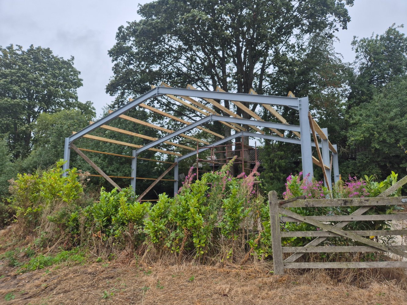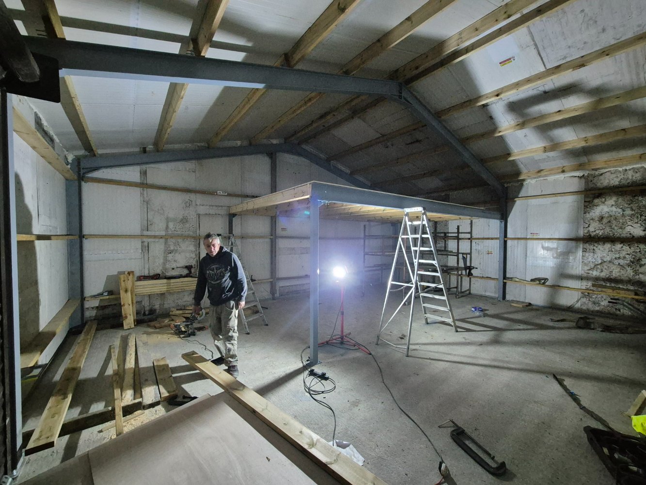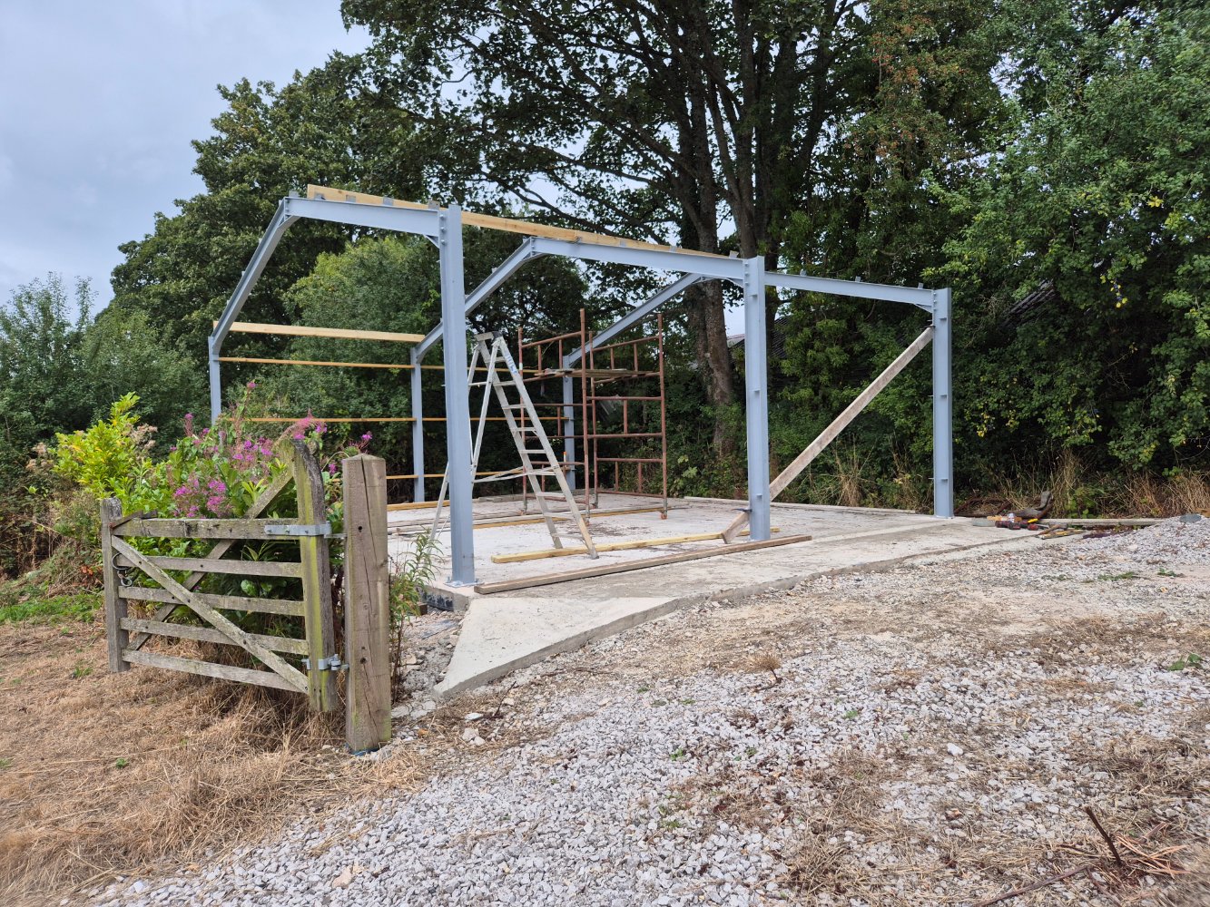 Well with our last shed almost finished it seemed fitting to start on mine thst I've been planning for past couple of years. So I've made the steel frame last year and painted it, aswell as laying the concrete slab last year but now the time has come to erect it all so heres our progress