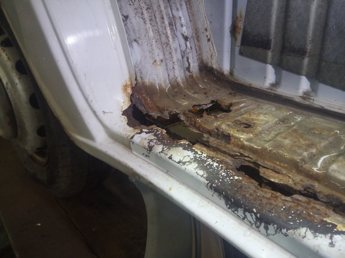 Its been in the wars a little but Ive had much worse. Steps are fairly solid, rear spring mounts are ok, the rear crossmembers a bit rotten and one sill is bad. Arches will need a bit of tinkering but probably not replacing. Power sterring blows fluid out where the pipes have been fitted so the rub on each other so they will need replacing. Plus of course everything the MOT tester finds on top. Whats the worst that can happen?