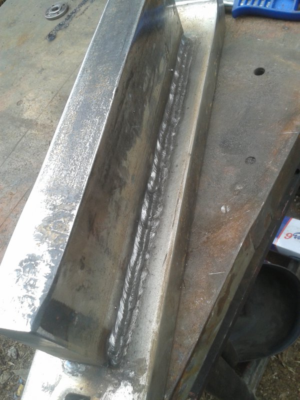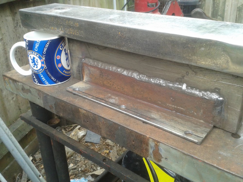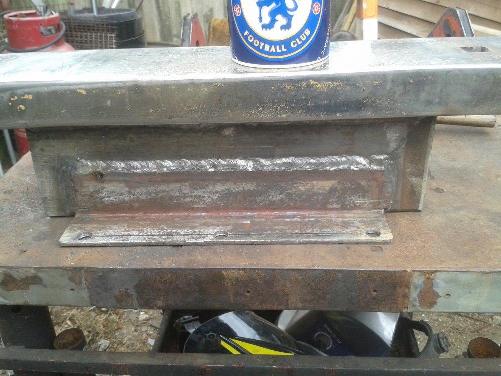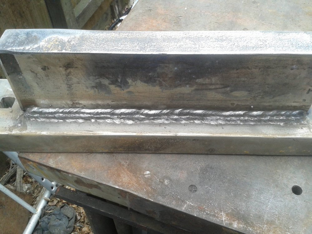 ). Weld each side, then check it for square and run the next weld such that it'll pull it into square. Get loads of passes on each side, it'll make it more solid and it's all good practice.