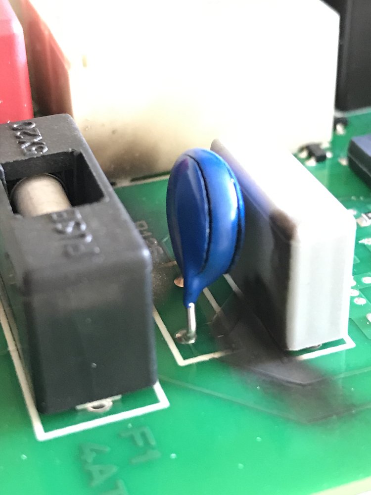 I wonder if they started out with just the MOV (as there is no white location box for the cap on the pcb), and those were failing too often, so they added the green cap as a modification, but it does have the right rating, so the board is still vulnerable? It's all pretty unimpressive.