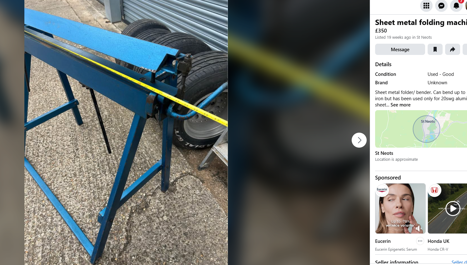 was a lad who done body repairs and wanted it to make sills...takes 2 men to lift it. I had it to form bends in roofing felt for flashings and had it years. he paid me £280 for it so dont know how much it is now but i do know it wasa heavy machine.Very small world isn't it!! This one has turned up in Somerset.