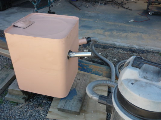 Decided to have a go at mending the diesel tank. I rigged up a way of supplying plenty of fresh air intom the tank using the vacuum cleaner. The idea is to dilute any vapour.