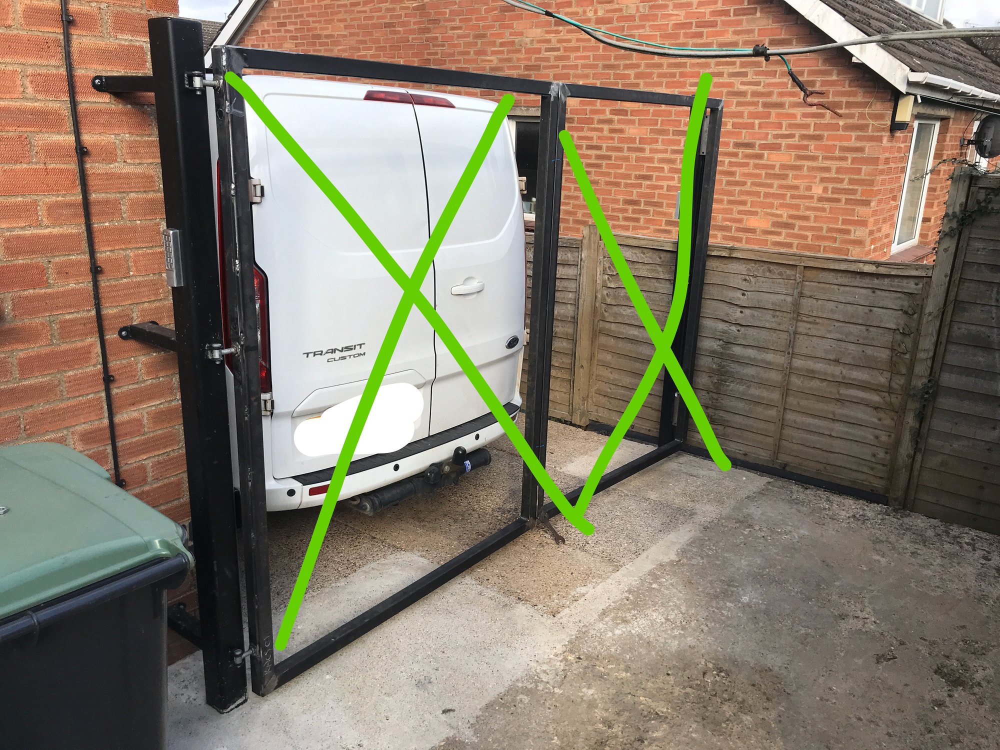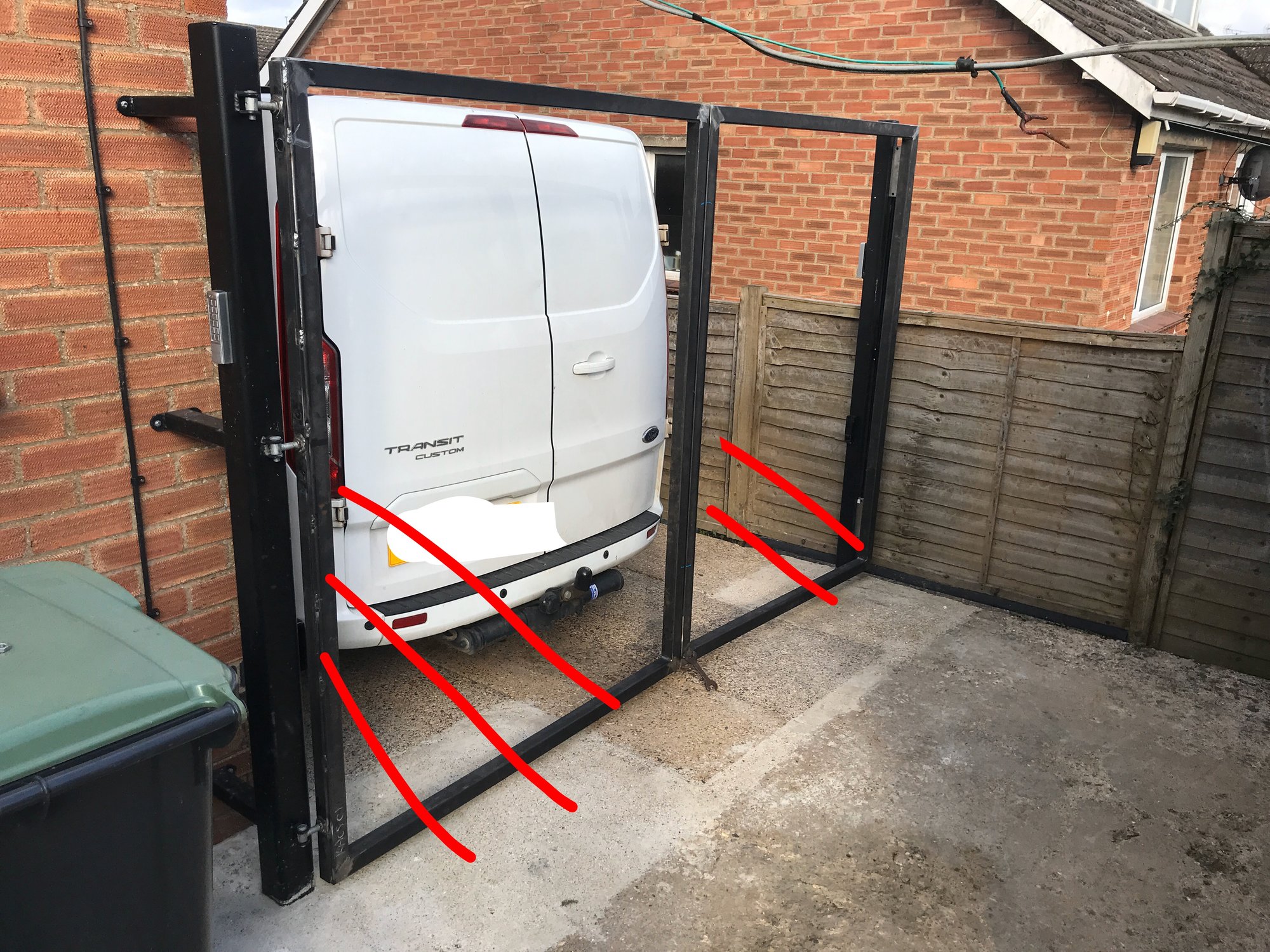 Right, opinions on bracing this gate. Currently with no supports it’s a bit flexible. Any ideas which would be best. Some 45 angle pieces in the left hand corners like the first pick? That would stop it bending down I guess. Or diagonal cross bits like the second pic
