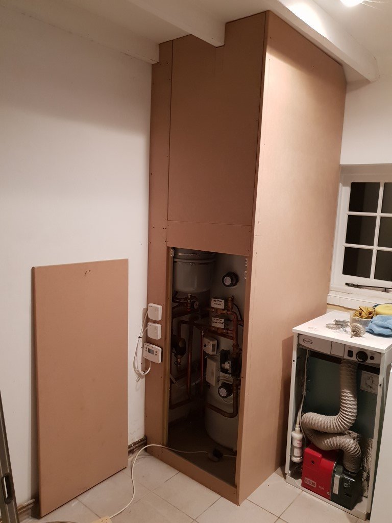 No, we don’t need a shot of the whole room. It is where it is and being critical of the installation is not contributing.maybe we need a shot of the whole room, it’s neat as it is but layout just not thought properly. It seems to me that the boiler could have been fitted in the spot where the cyl is now and the whole instal could have been fitted on one side of the room- easy to box in ! The window doesn’t help where it’s at but I am sure it could have been improved upon !