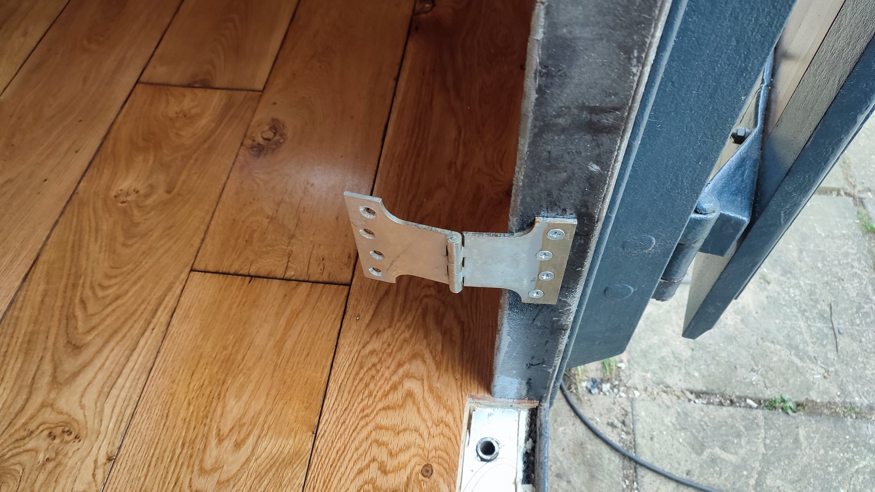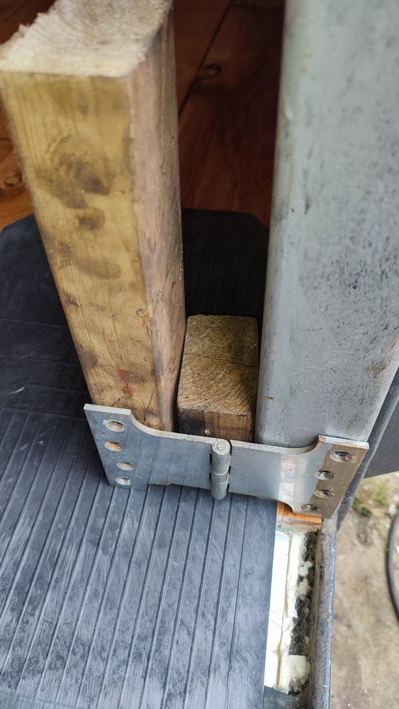 Eldest held a sledge for me whilst I used percussive persuasion with another sledge. After 5 minutes with the mapp torch. Without heat it didn't budge, but the heat did the trick. I'll put some spray zinc on for now and paint it all up when I do the inner door posts.