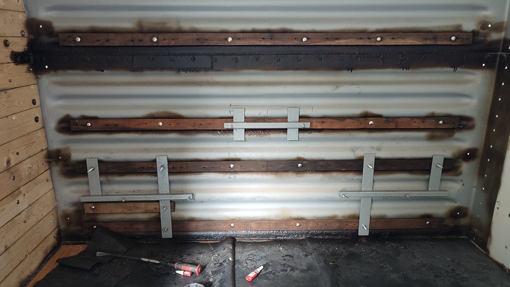 That’s ugly….Brackets painted and fitted. After work tomorrow I might get a slab on this end.