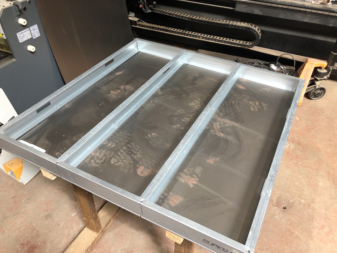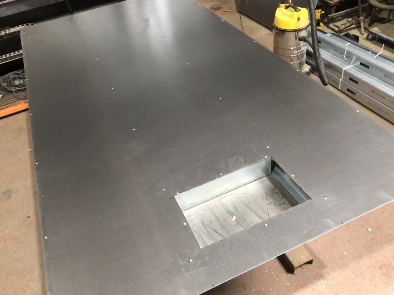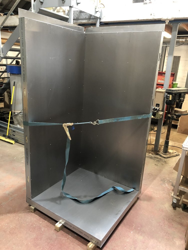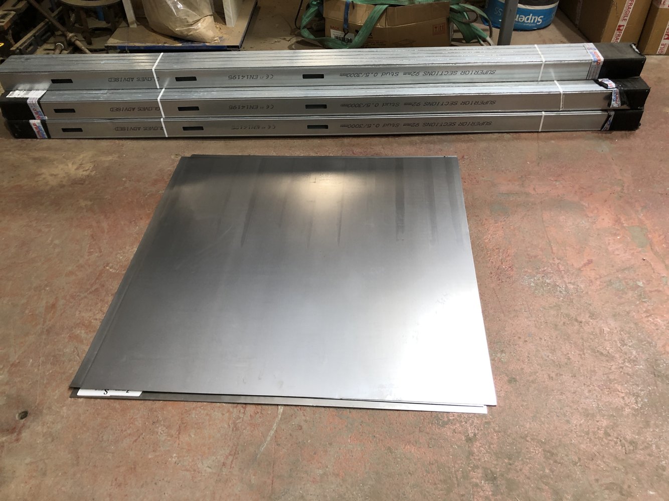 The metal studs and 0.8mm sheet cut for the floor and roof of the oven.