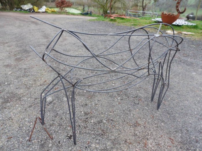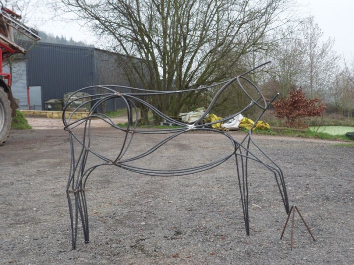 so I set to work bending up 10mm black finish mild steel bar, not used this stuff before, nice stuff to work with. Forgot to photograph the process, but finished the torso today. Ok so not to calf like, but look at the butchers and think of the headless limbless carcasses.