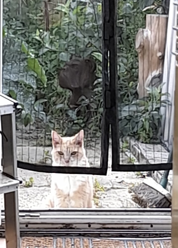 No.I’ve been using one of those fly screen thingy’s on the conservatory door, but Toby has forgotten how it works, so I have to keep a big gap at the bottom for him. Sometimes even that isn’t enough.