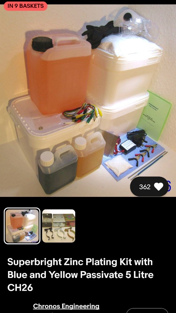 I am totally new to zinc plating. It was VERY hard to find a kit who would post to NI. Eventually this more expensive kit was posted and should arrive monday: