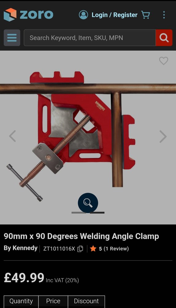 Clamping a 90 on box section or flat bar. Say up to 70mm or so. Is there a cheap ish jig / holder available for that?