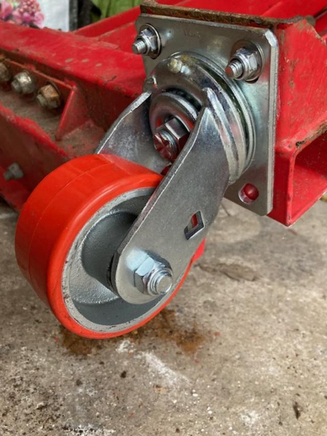 Screwfix wheels have been obtained, appear to be much more robust than the originals and we'll drill the necessary holes soon.