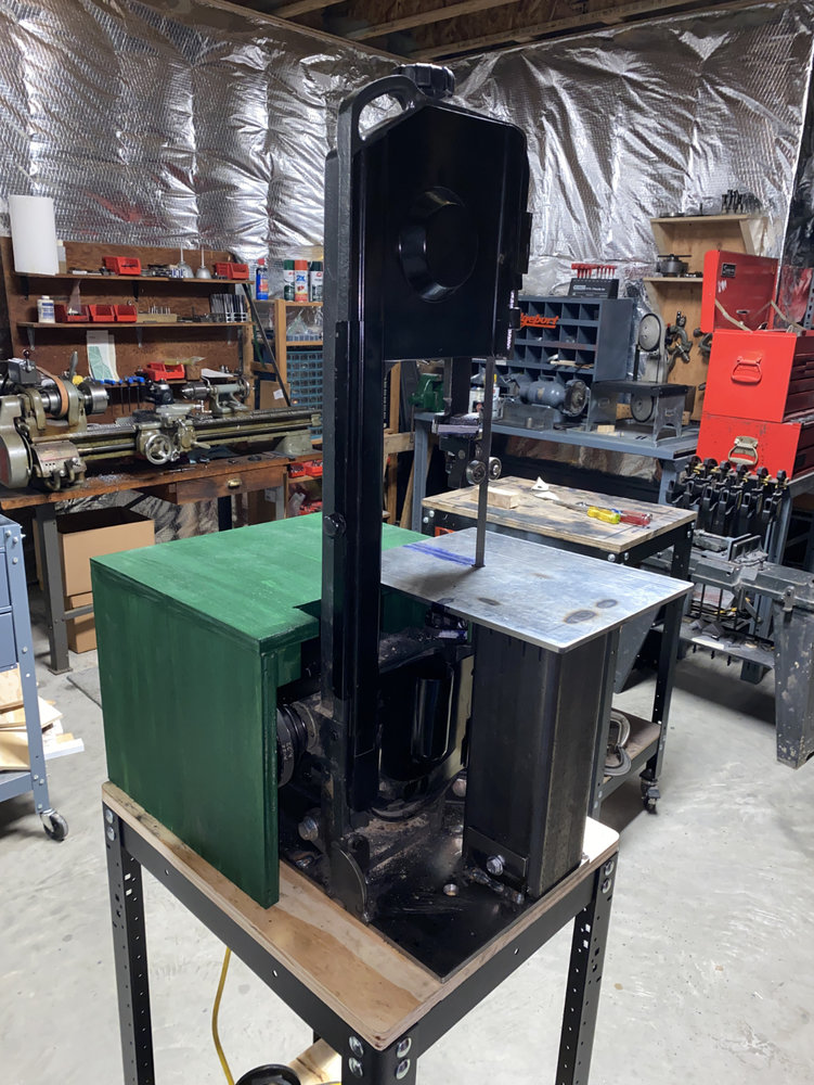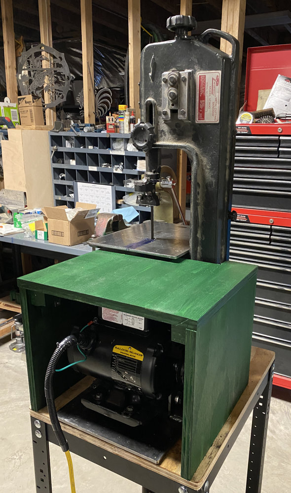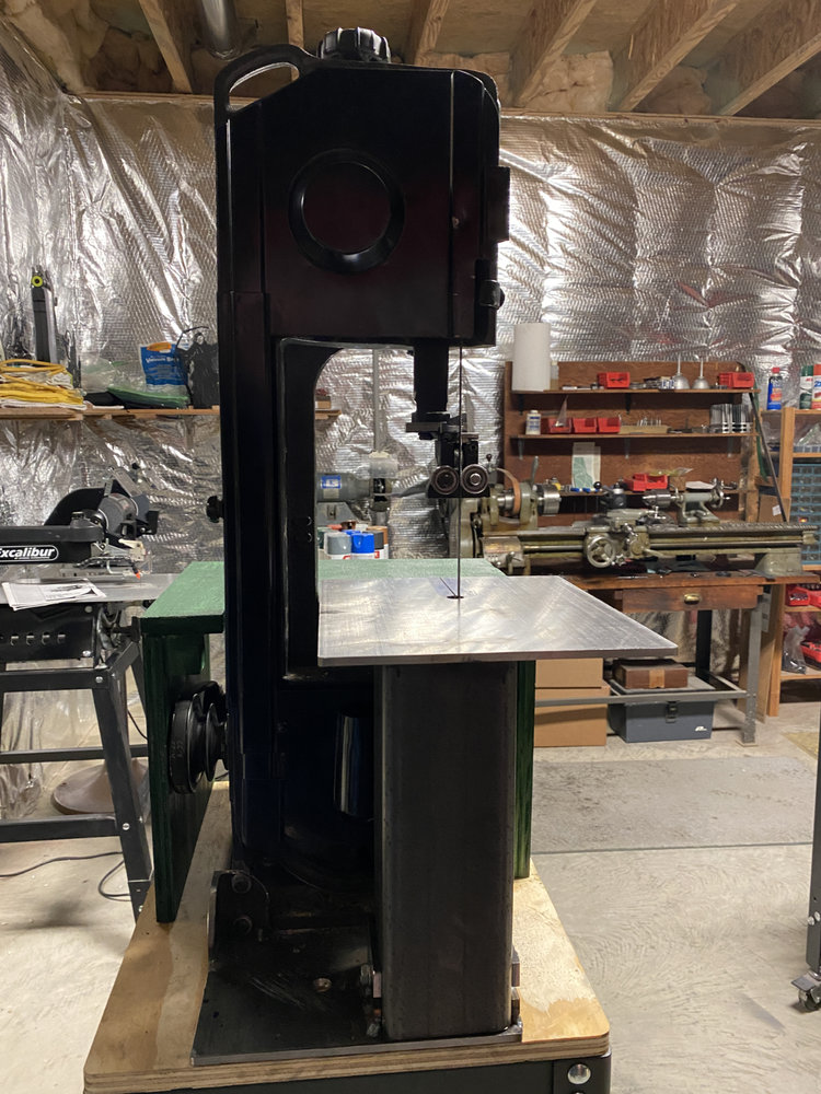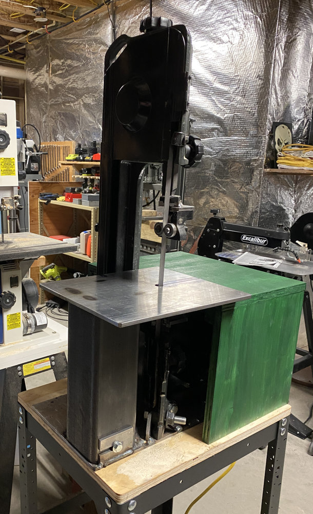 I previously posted pictures of a replacement table i fabricated for vertical sawing. Since I have a larger horizontal bandsaw (7 x 12 Jet) I decided to convert my little 4 x 6 Dayton bandsaw for vertical use only.
