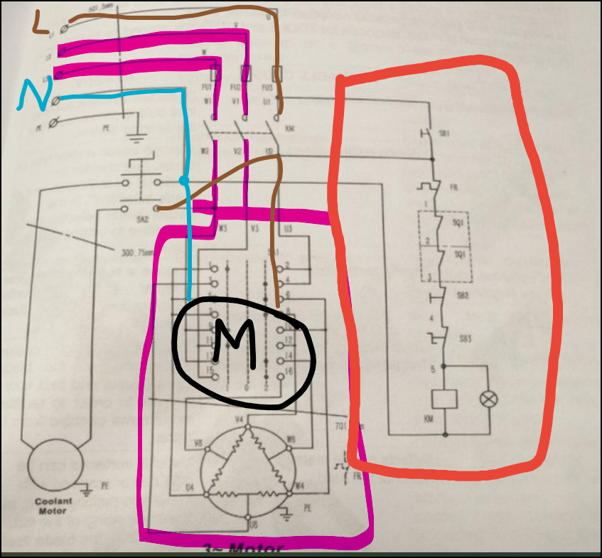 That bit looks identical to the 3 phase version? Admittedly I’ve not looked in great detail but the only difference to me looks like the contactor is just using 2 poles and the speed selector switch is removed??What do you mean, configuration?, it's a chain of limits, switches etc. feeding the relay coil.