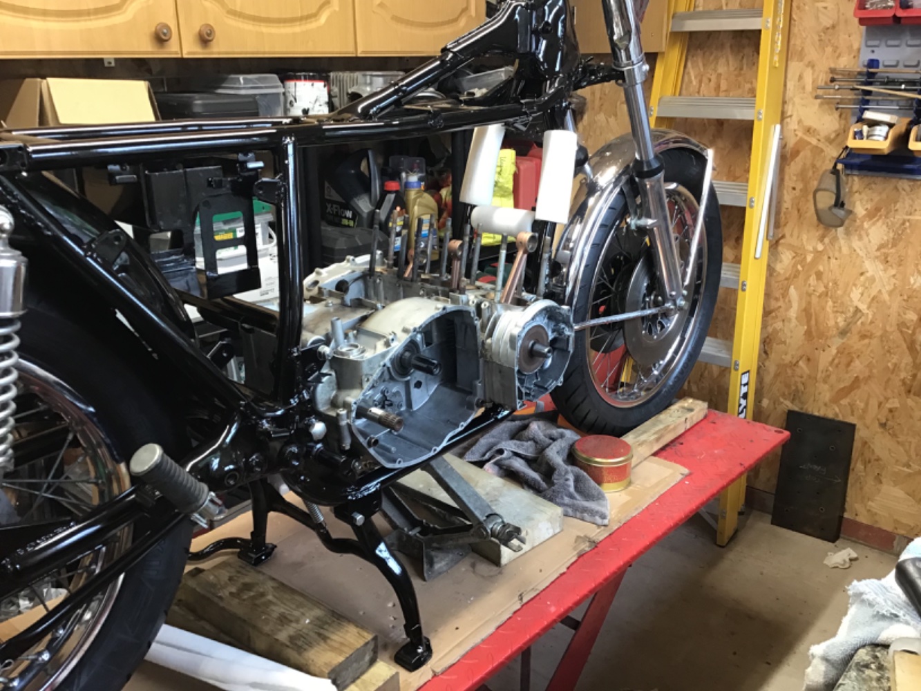 a friend of mine ,richard p, bought the 55o triple suzuki new , with insurance money from a prang on his cb 250 , he went for a spin out in the new forest, my brother on pillion, apperently they were capable of more than the speed limit , he then pootled into new milton , bike started swaying so he slowed and pulled in, as my brother hopped off...ping ping ping ..severeal spokes broke on the back wheel and it collapsed ! had to be recovered , they were lucky lucky lucky that day.Engine back in frame View attachment 505234