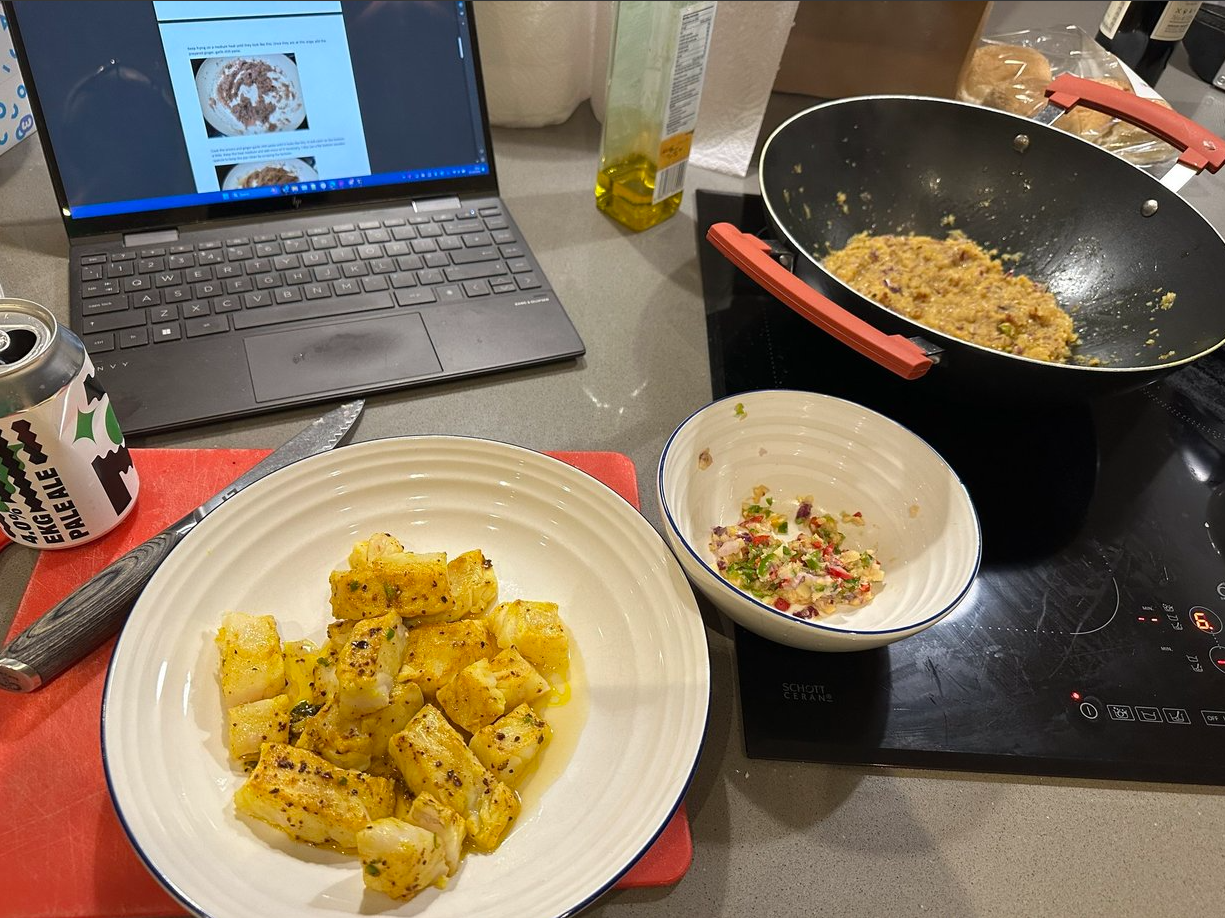 Cheers for that, Parm. I followed your sauce recipe, but with fish rather than meatballs. Here's the potions & lotions (I seared the fish in a little turmeric, pepper and chili):