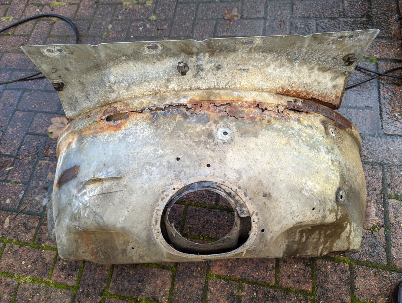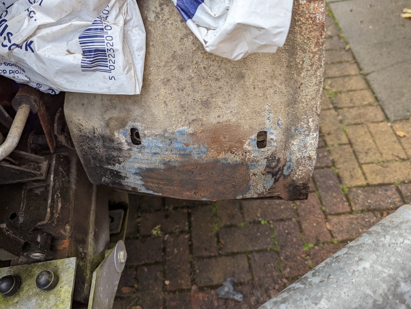 The double skinned edge that is normally covered by the sound deadening had some mud trapped, the galvanised inner wing has not survived well!