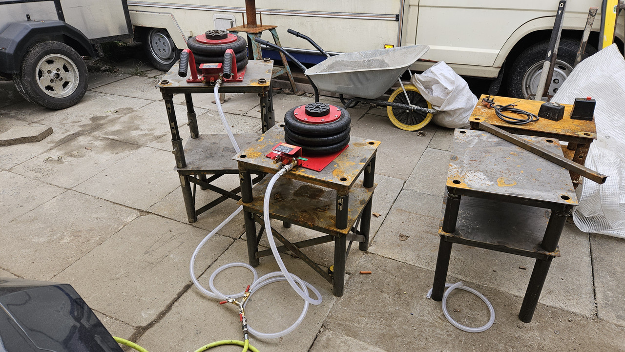 I still think a normal jack would be a better way of getting it up to height rather than trying to control 2 air jacks. I bought one of these, he has a few, I think they are ex MOD, https://www.ebay.co.uk/itm/275985419047 makes jacks from the likes of sealey and clarke feel like toys.