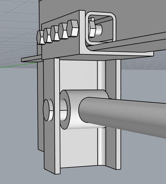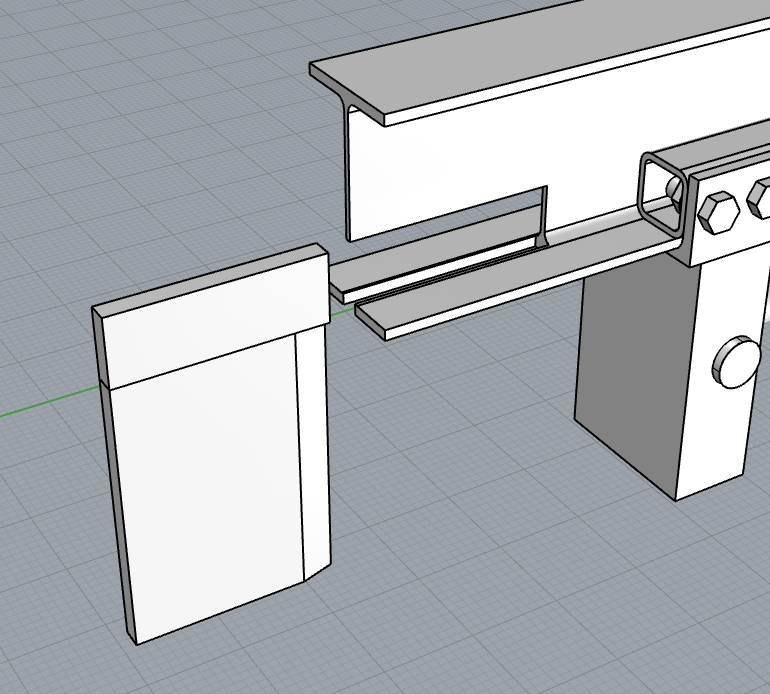 I'm rather pleased with the sliding push plate assembly, the i/u beams happen to fit perfectly together in such a way that 50x50x5mm box section drops in with 1mm clearance and 5x m16 bolts secure it thus restraining it from twisting/bending off and quick to build/fix if needed