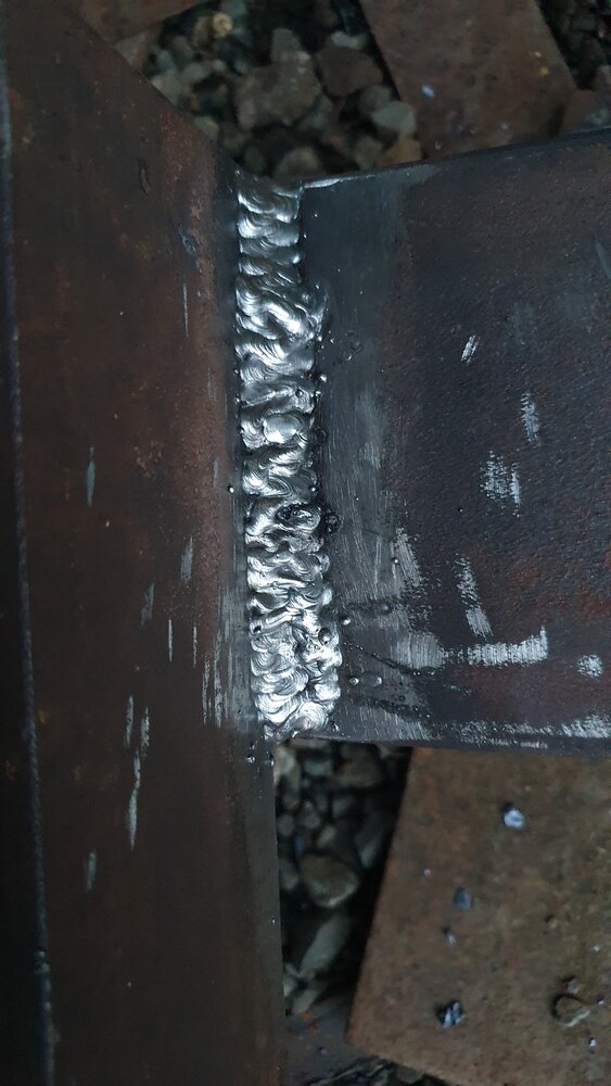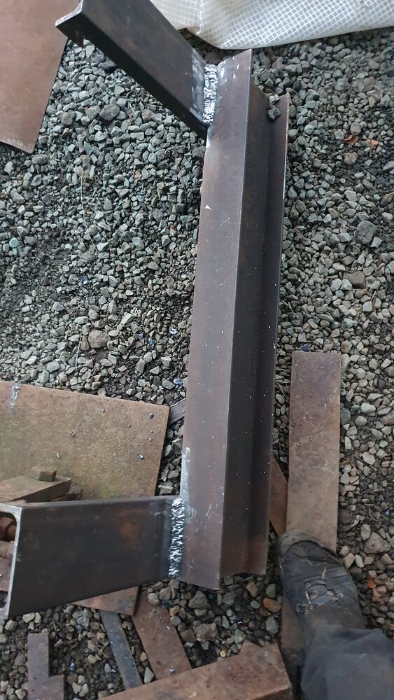 The beam is cut like this one so it's not just flush flange to flange.once you start hanging things from a quick hitch four or five feet of leverage and some rams and blades etc the weight soon adds up and the load on the weld gets quite serious quite quickly , maybe a couple of webs in a few places or the likes ,,,