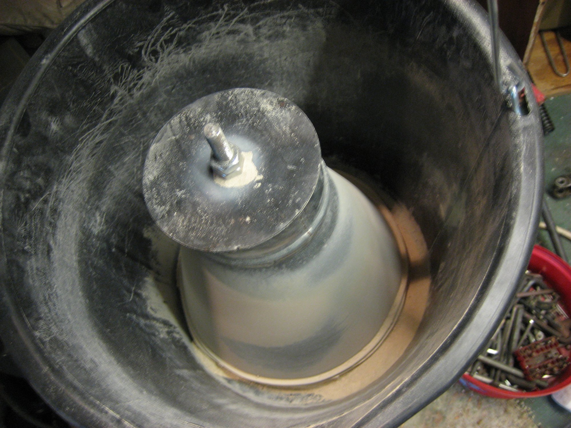 I filled it with some cat litter and plugged the sander into my home made drill controller ( see yet another thread) threw the parts in and left it running on a very slow speed for about 10 hours.