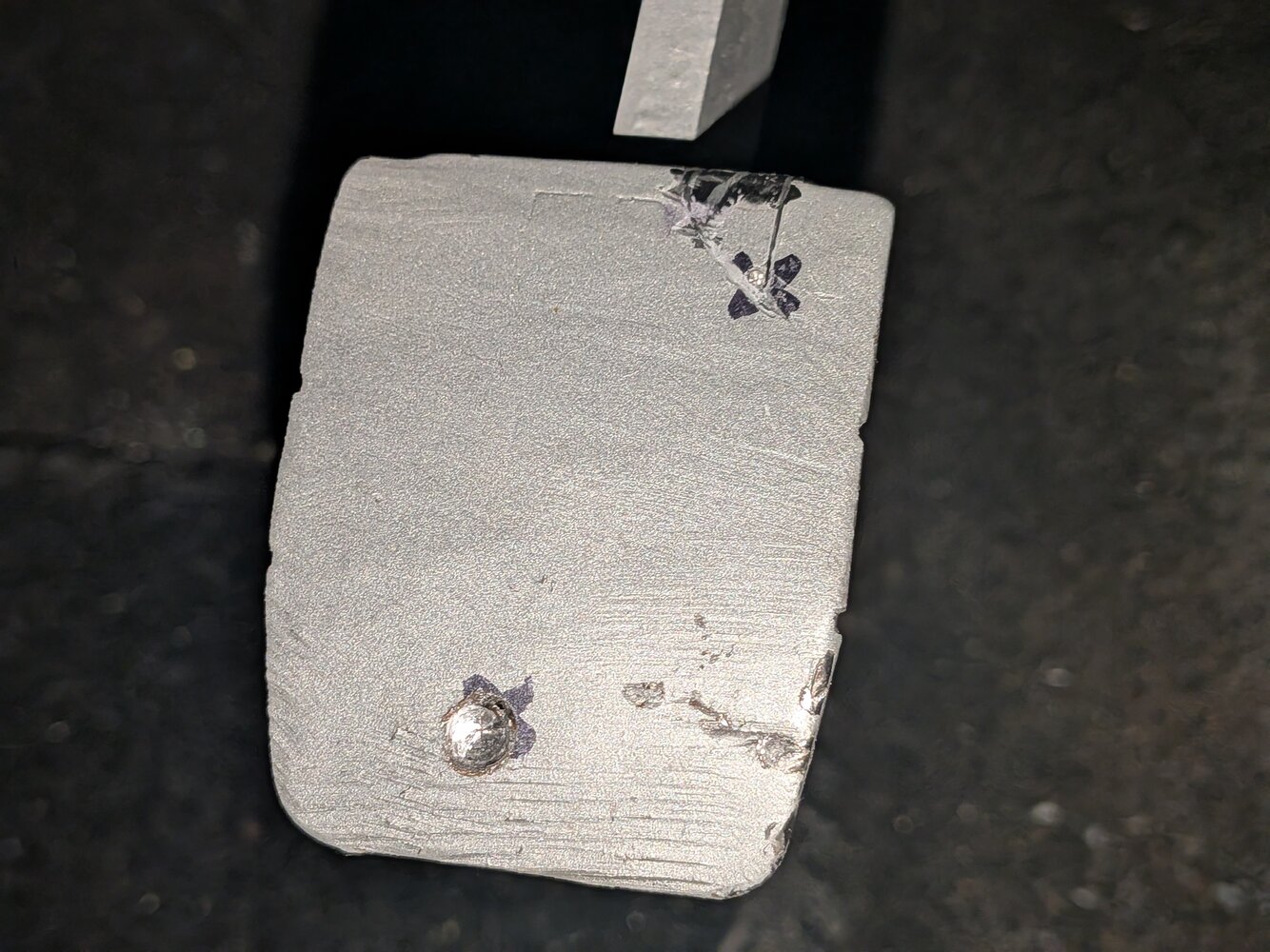 So, tried to drill through some car pedals with standard metal bits, not realising they're either hardened, or I've managed to work-harden them spinning the bit... I've just got polished craters where I'm meant to be cutting through.