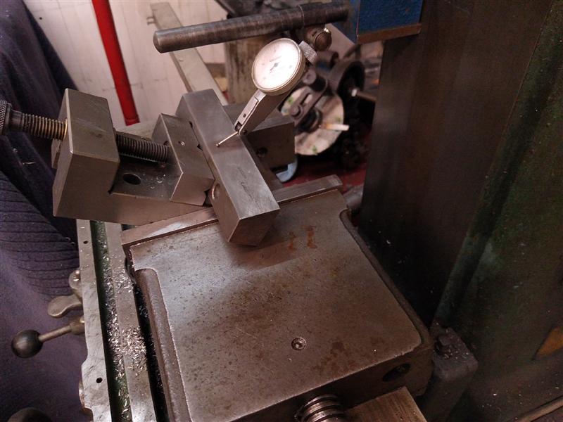 It looked at least 20 thou deep so I didn't fancy scraping that. I put it in my milling machine setting the angle by putting one vice inside the other and using a dial gauge to set the face flat.