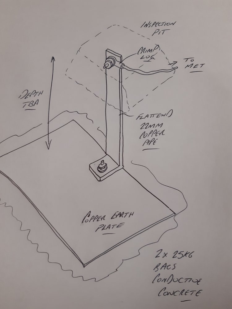 A bfo copper plate will go in in the next few days. The soil that comes out of the dug hole will be sieved and put back, probably with a scattering of bentonite cat litter as an experiment. Pics & test readings to follow as I do it.