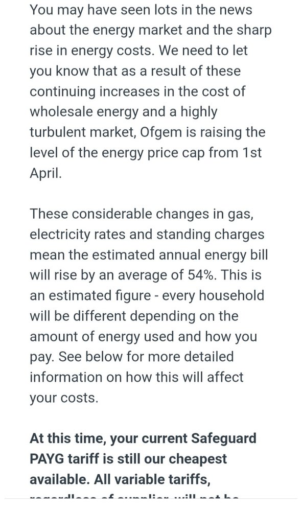 Bought house in November, fitted with a PAYG meter, not been able to get off it with everything going on, so I imagine I'm already paying alot more than I need to anyway.