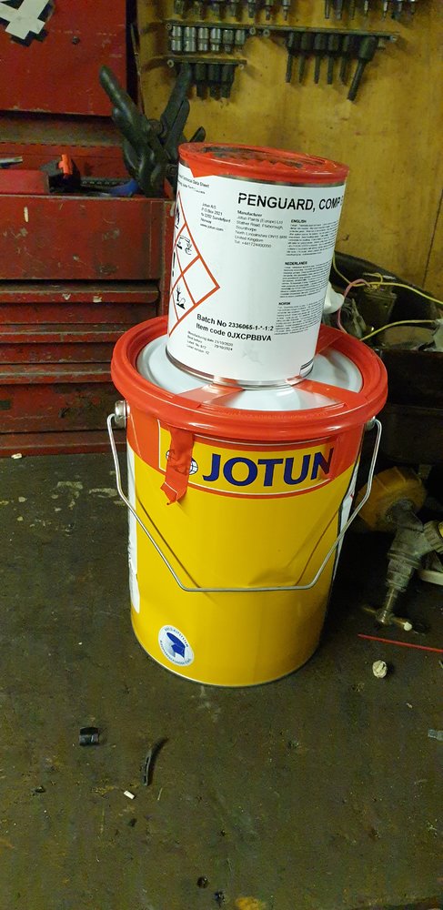 I was looking at the Novol Classic car epoxy primer but only comes in 1 litre and seems quite expensive, so started looking at the Jotun 87WG which comes in 5 litre and could mix some up at the end of a day of cleaning and put a coat of epoxy on?