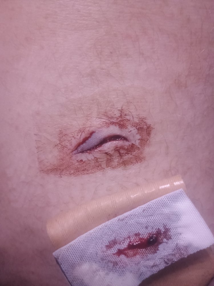 Home stitching would be asking for it to get infected. You’d probably be better superglueing it than stitching it yourself. Whatever you attempt make sure it’s thoroughly cleaned out. The above definitely isn’t medical advice. If it’s bad enough for you to think it needs stitching I’d get it checked out properly.It's not hurting at all, one plaster strip has already come off on the walk back from the pub.