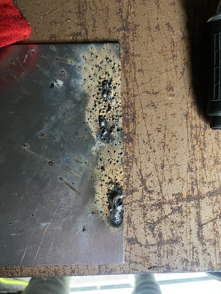 My effort today is probably how my previous efforts have gone. I don’t seem to be able to run a stream.. I just get a lot of spatter and all I’m trying to do is run some lines down some scrap steel.