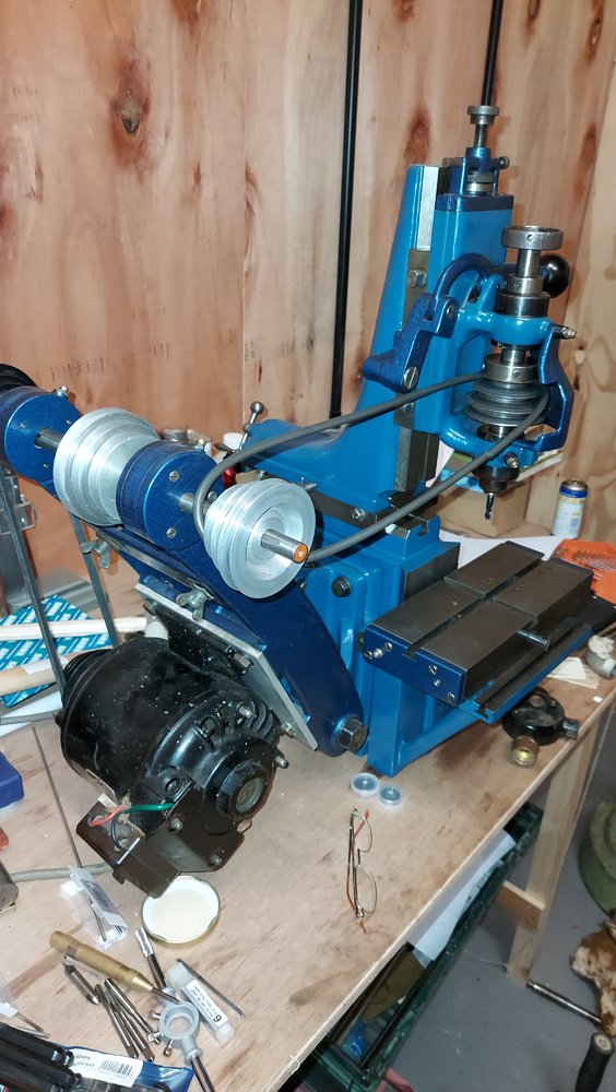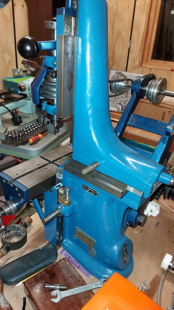 I have (hopefully) attached 3 photos of one of my original Hauser motors. It currently is setup up for 415v star - but sometime soon the "bridges" will be rotated to enable 240v delta operation with a VSD (Australia)I too have a Hauser mill, very different to yours, did they ever build two identical machines? The one I have is similar to the green one on Lathes UK http://www.lathes.co.uk/hauser/page6.html but has the motor bolted onto the heavy main casting. My machine too has lost whatever levers it had for moving the tables, except the vertical slide one. At present I am stuck as the motor is three phase but wired star. I did post about it on here but nobody seemed to know if it should be fed three phase as it is, or if the capacitors, etc, had originally been mounted separate, so 240v and cap wires fed into to the motor. Anyone else got a Hauser with it's original motor? Those tiny and expensive collets that they take are a bit of a pain, I only have a collet for 1/4" dia cutters on my machine.