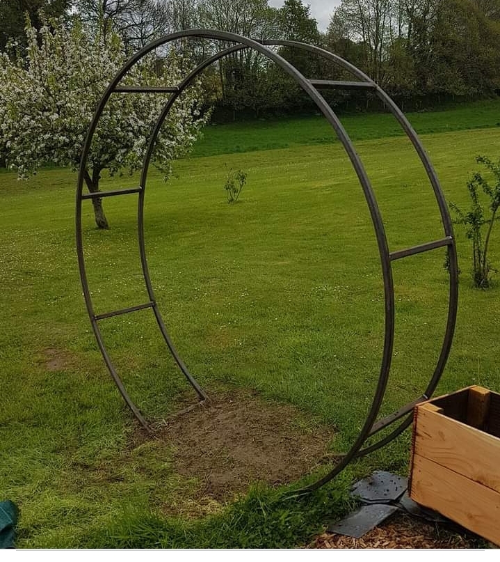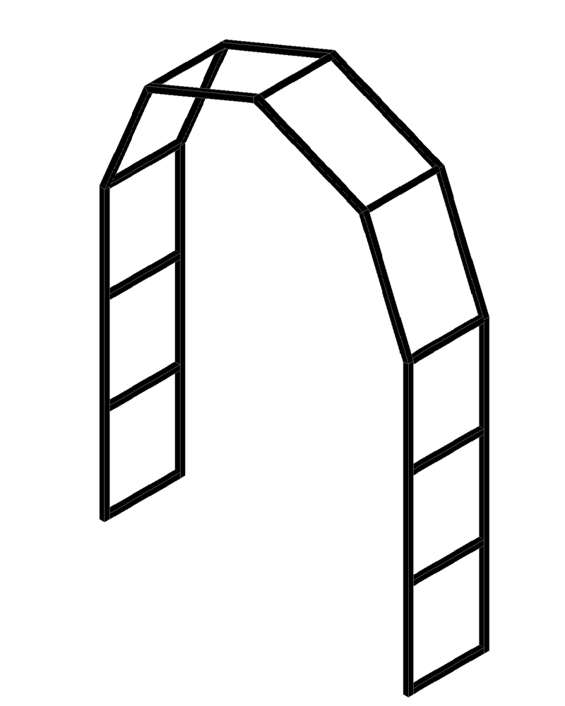 I try curving Z profile steel window framing to make an arch, for the balcony door on our house in the Phils. Total failure, no matter how I did it, it buckled, twisted fought me every inch of the way....I need to make a garden arch, 3 in fact but one immediately. One is to replace an existing curved arch. The other two can be the same. I don't have a ring roller, another "one day" project, I got as far as buying some bearings to make one like @KimB did but to specifically roll this stack of box. So in the meantime this will be a cut and shut job. Some quick CAD: