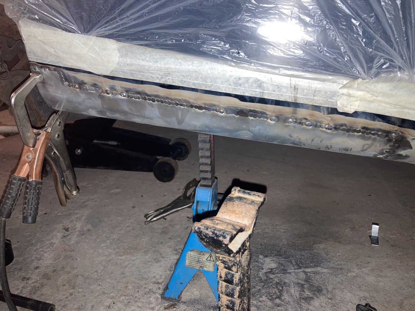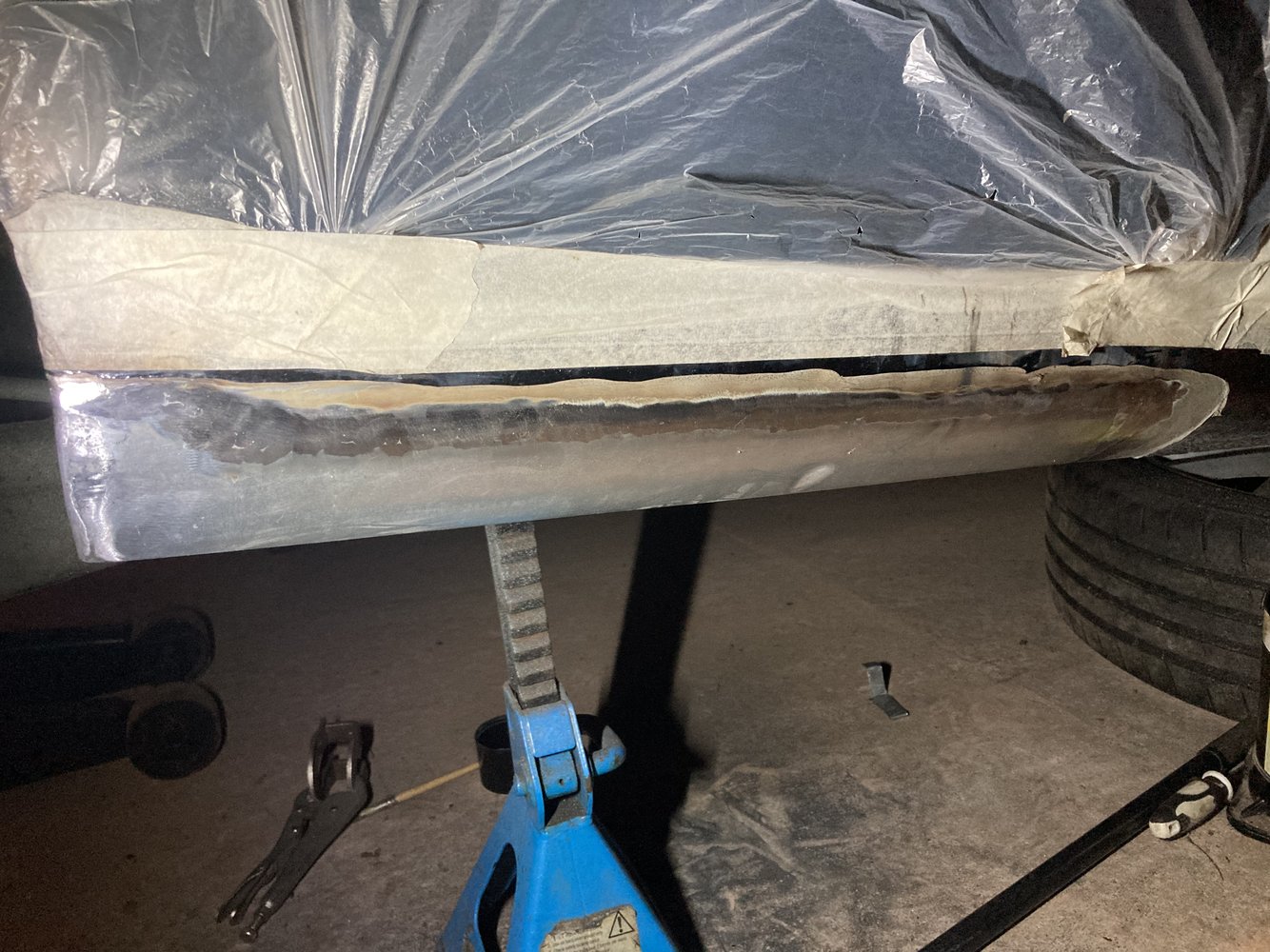 How would you go about it? I have thought of maybe cutting the sill piece slightly larger than the hole and then marking the car and cutting a bit more out but I'm a bit reluctant to chop anymore out of it due to being quite close to the paintwork, currently the repair is underneath the rubberized coating so it will be easier to cover up after welding rather than having to get the rear quarters painted.