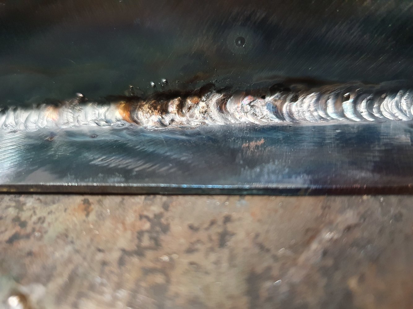 Other than that, it's looking good... if you want to avoid the melt-through/saggy ends, you'd weld the last 10mm first, while it's cold, then start at the beginning and weld up to and tie-in to the end.