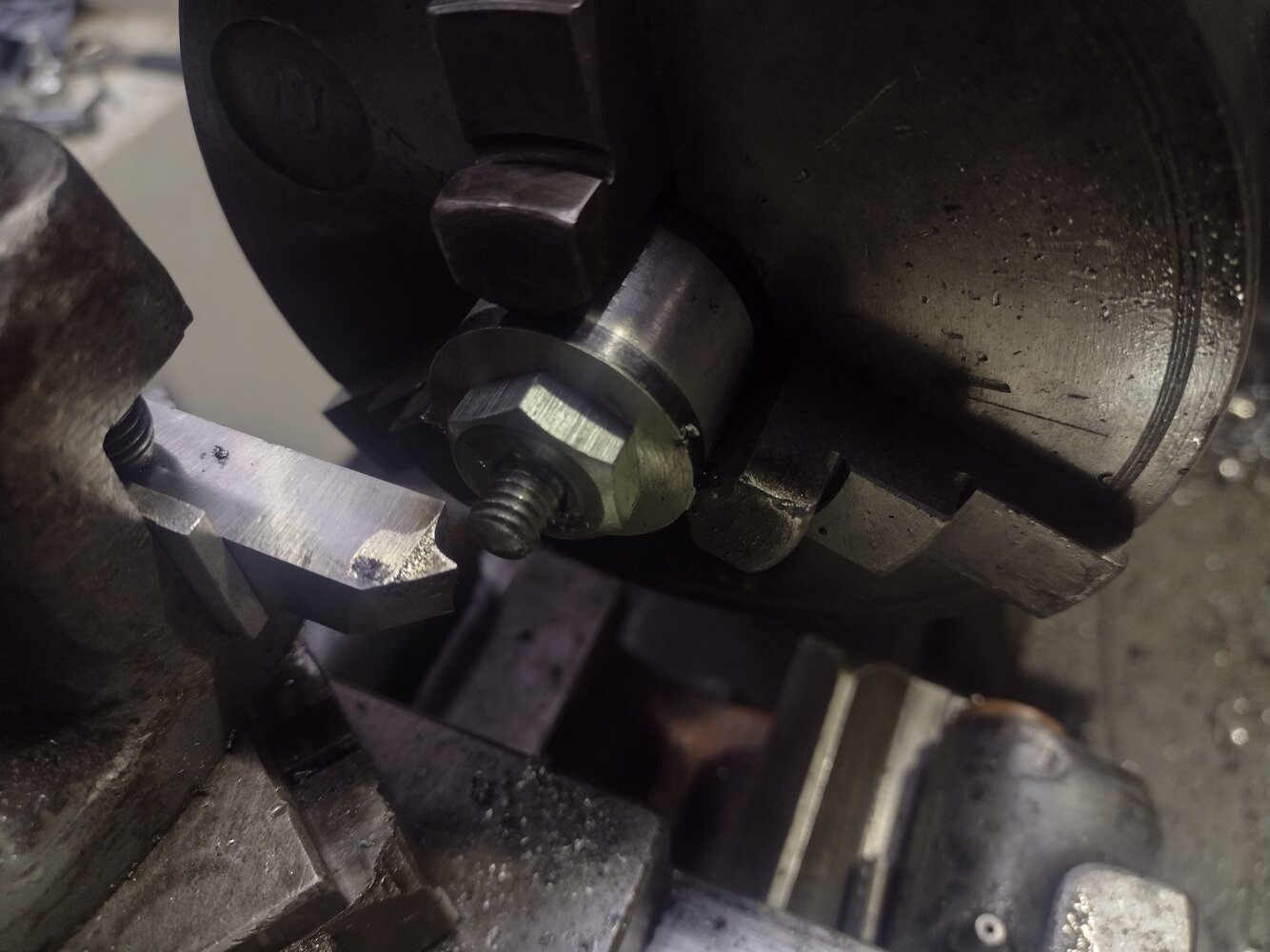 if I take my 30° insert holder and set it up perpendicular I could probably plunge to part and chamfer the thread in one go but otherwise I'm fine with flat hence parting and reforming via unscrewing since once the bolt is in its getting thread locker applied, I just need a length of thread that won't be sticking out the back catching on clothes.