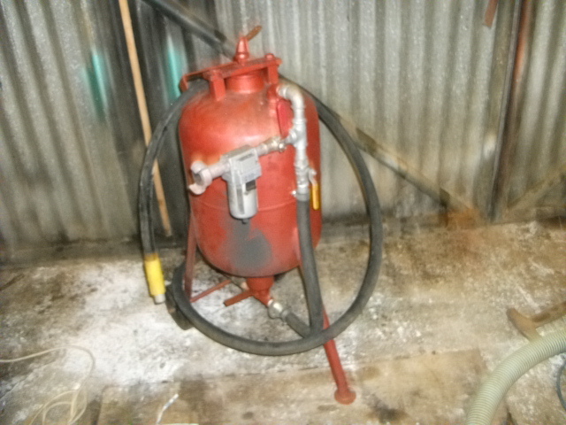 the grit falls through on to the metering valve which sits slightly higher than the outlet. the lever is turned untill the corect amount falls through.3/8 bsp fittings are used giving a good clearance for the grit to fall through without clogging up/. any iregular media falls to one side of the valve and just sits in the bottom cup and doesnt stop the flow . even with moist air it rarely blocks up and there well worth making heres mine .its fitted to the small pot the larger pot i have will be fitted with the same sort of valve another good help is a cooling cylinder next to the pot and i use c couplings in stead of the eurofittings that are still restricted