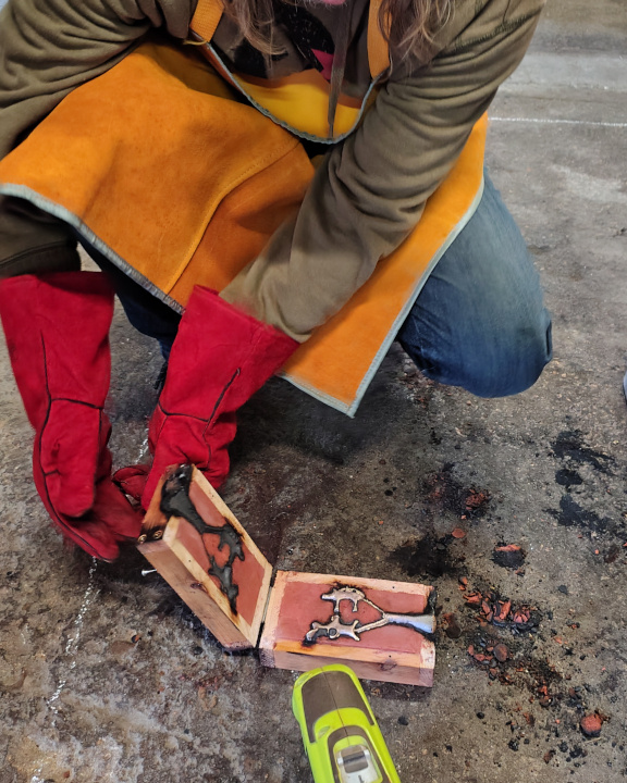 Have to say the last bit surprised me somewhat as I fully expected the tutor to do the final pour, but no the students were let loose with liquid bronze.