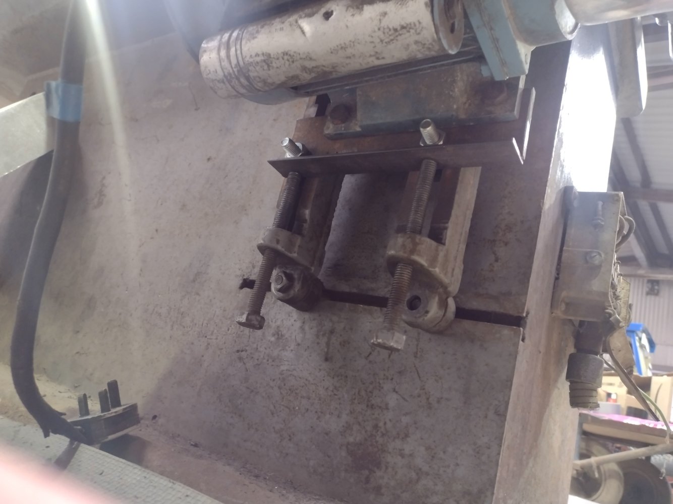 Had to make a couple of brackets to move the (replaced single phase) motor over so the motor/clutch pulleys lined up, can think of a couple of ways to tension the belt, by adding more brackets and either tightening the long bolts or adding nuts to the long bolts to put tension on but this is how it is now