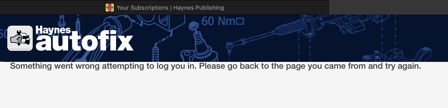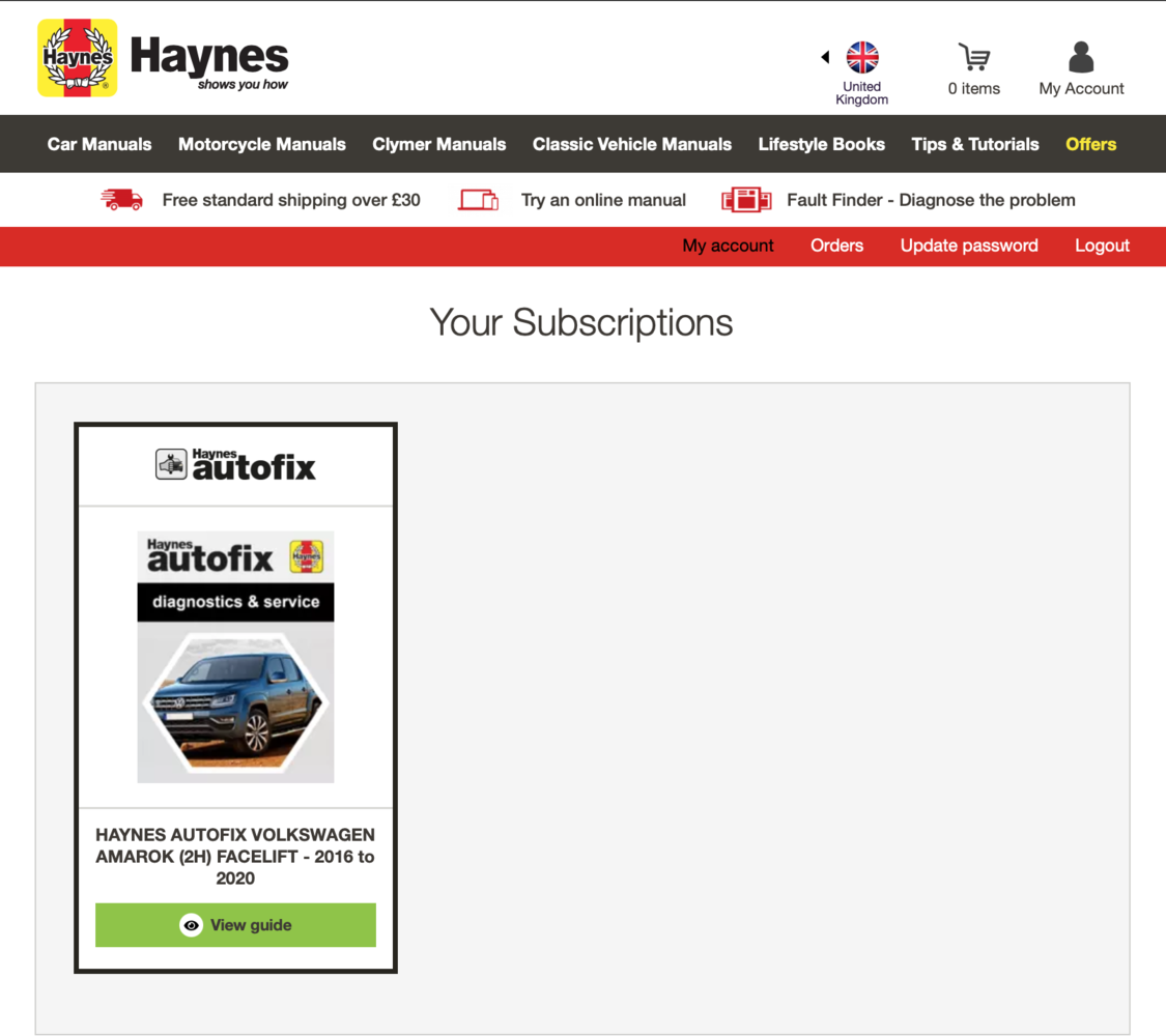 I ordered an online manual before Christmas, and when I log in to the Haynes.com site, I see the manual I've ordered, but whenever I click on "view guide", I get an error saying my login has failed. I'm definitely logged in, as I can see order history and invoice, just unable to access the actual online manual,